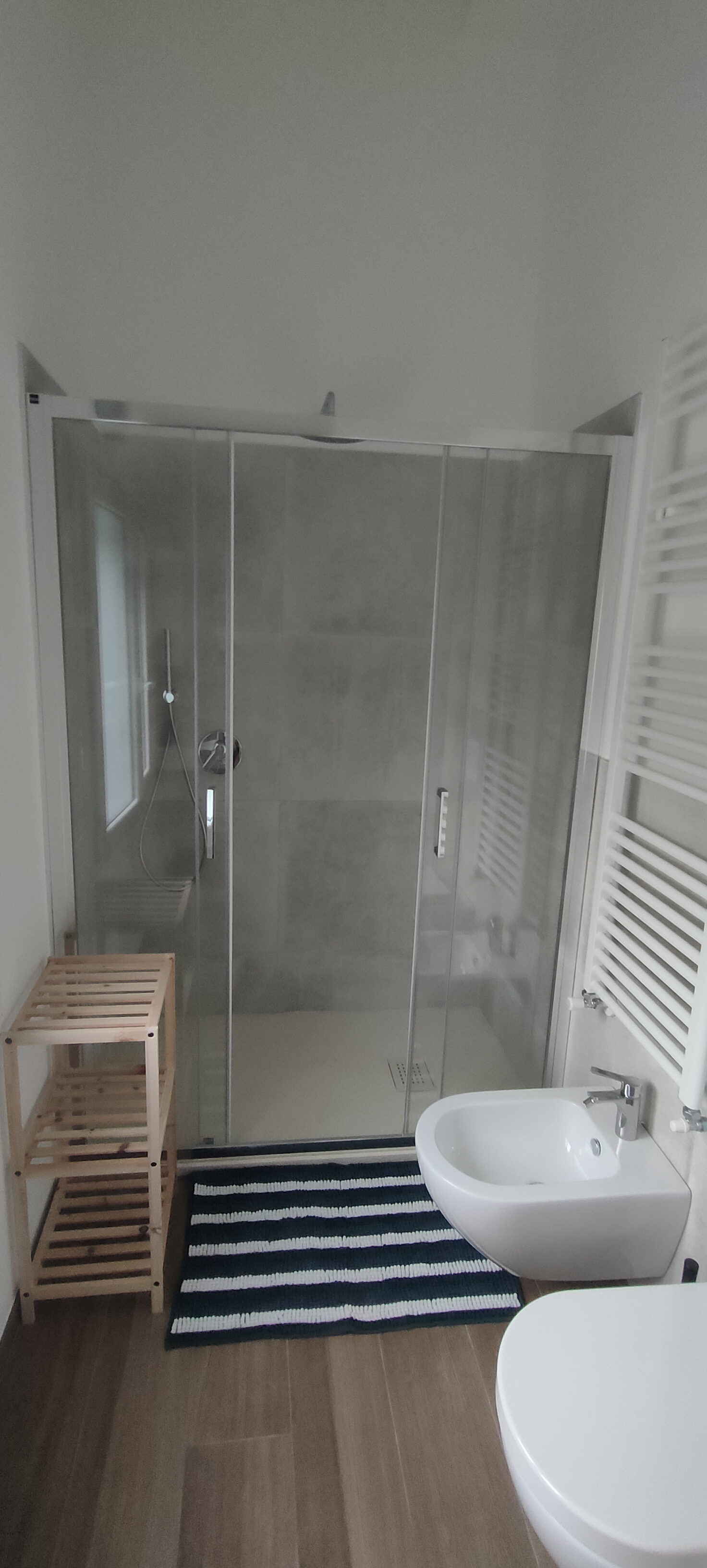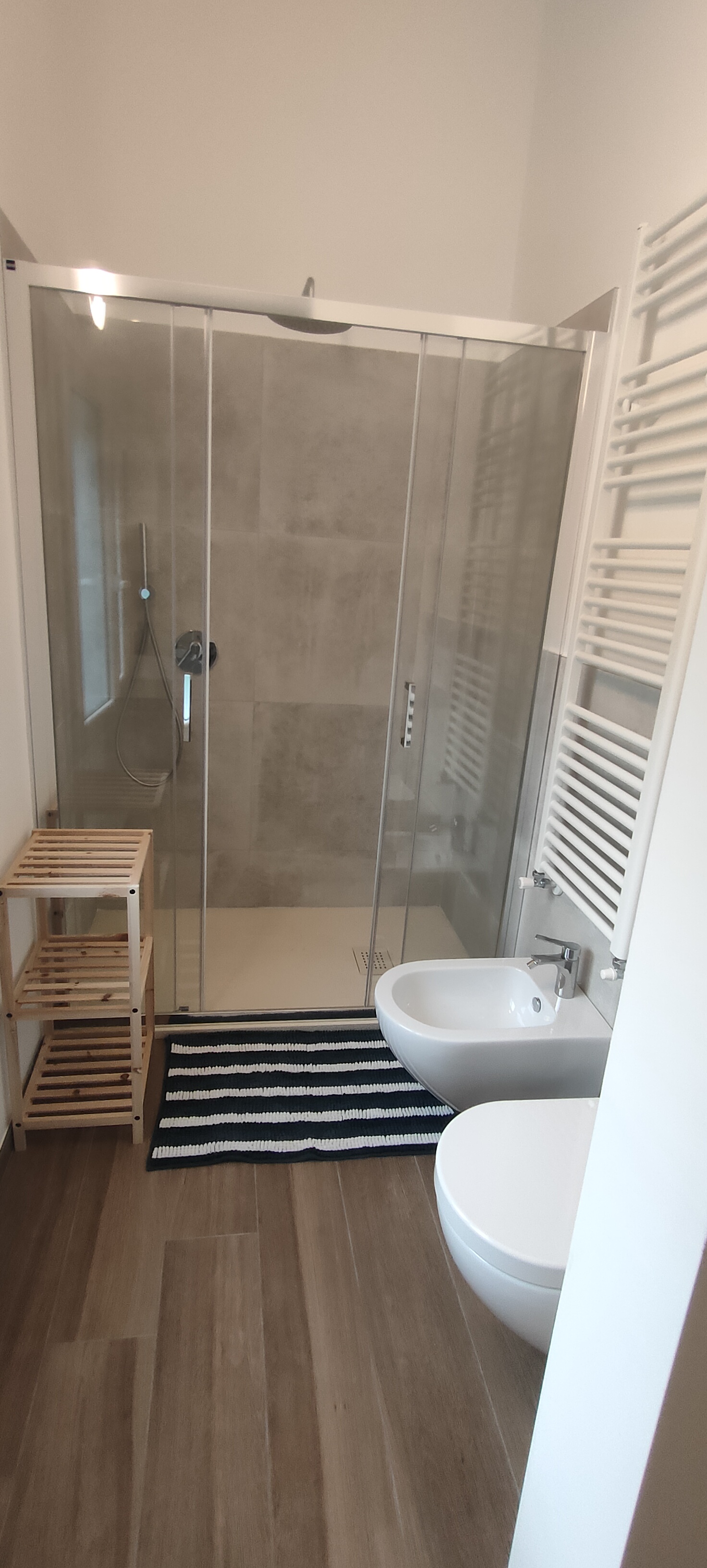 Bagno completo ( sanitari sospesi incluso il bidet, box doccia 150*90, asciugacapelli)